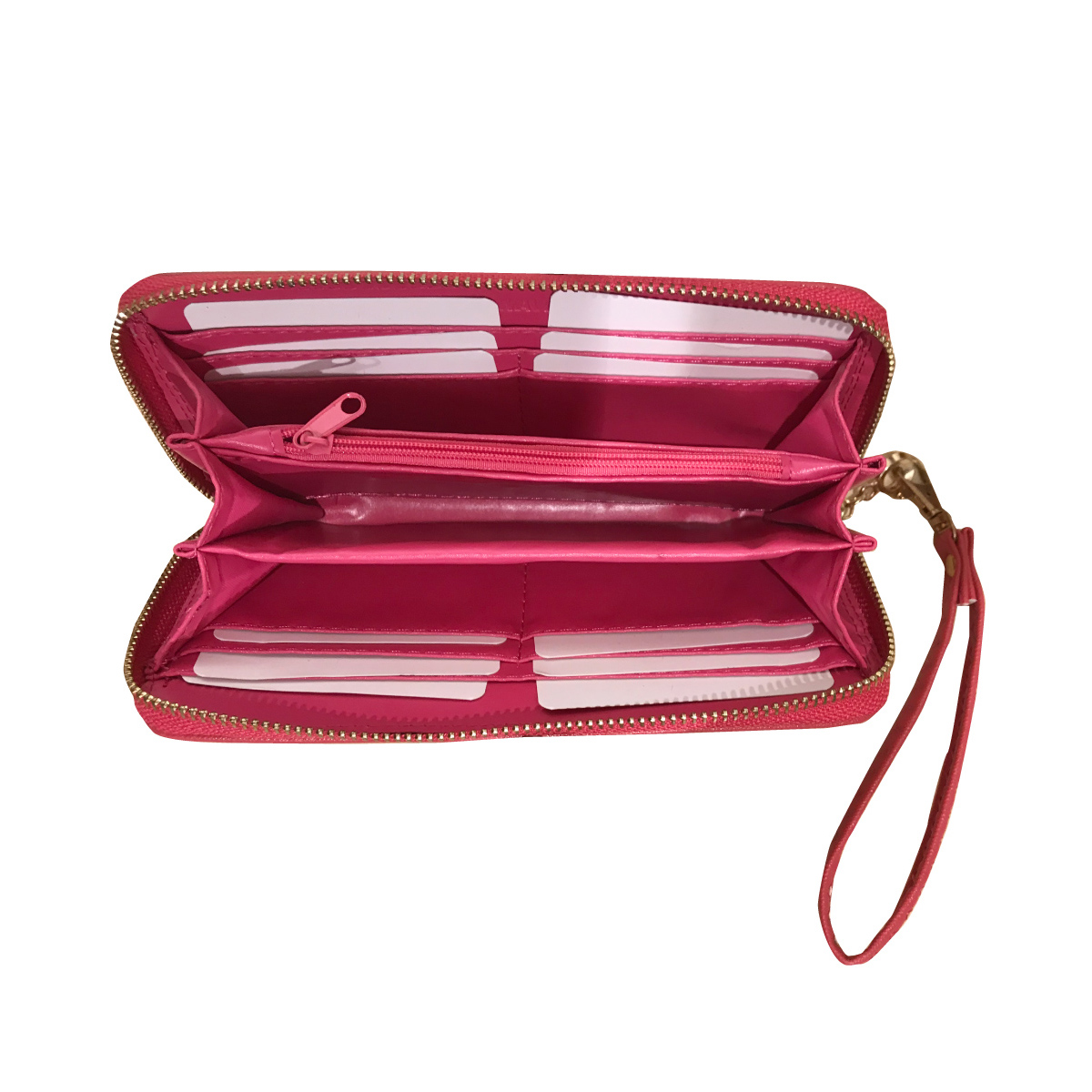 ארנק אופנתי לנשים. כיסים לכרטיסי אשראי משני צידי הארנק, מקום לתעודות, כיס מרכזי עם רוכסן, כיסים לשטרות, רצועת נשיאה, קופסת מתנה. מידות המוצר: 19.50 * 9.00 ס”מ