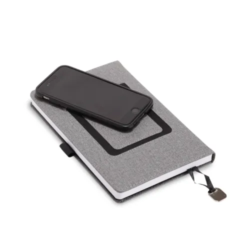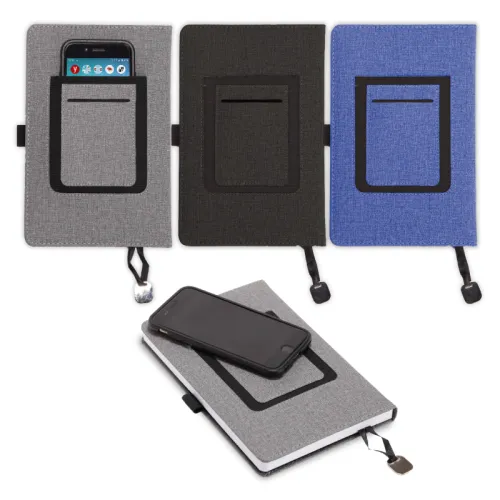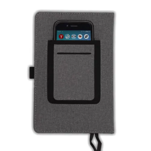 מחברת דמוי עור מלאנז’ מעוצבת עם כיס חיצוני ומקום לעט סימניה ממתכת גודל A5
