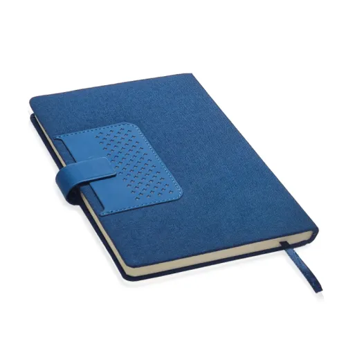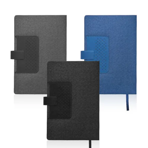 מחברת מהודרת עשויה בד מלאנז’ סגירת מגנט, עם תא חיצוני לכרטיסים ומקום לעט גודל A5