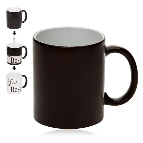 לאחר מזיגת מים חמים לכוס, מתגלה התמונה וההקדשה אותם בחרתם להדפיס מתחת לצבע.