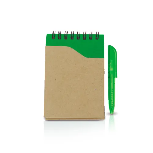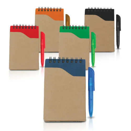 פנקס כיס ספירלה מנייר ממוחזר עם עט גודל A6 9X13.5 ס”מ