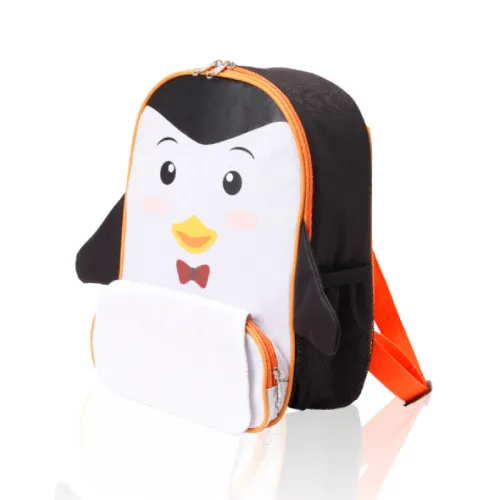 תיק גב צידנית לילדים בדמות פינגווין עם תא מרכזי גדול הכולל צידנית, תא קידמי ו-2 רשתות צד 30X11X21 ס”מ