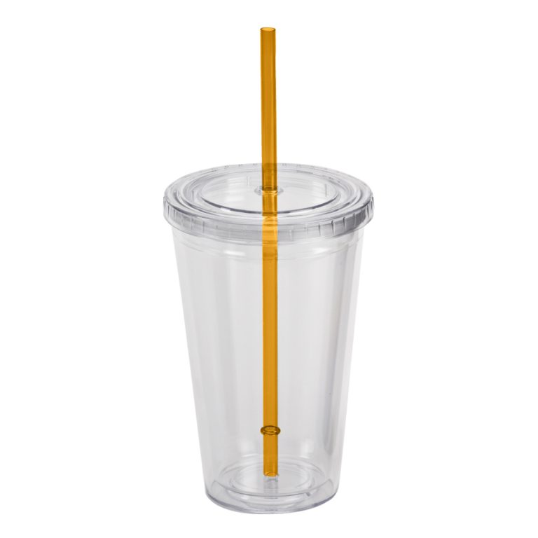 כוס לשתיה קרה בעלת דופן כפולה המגיעה יחד עם קשית שתייה ב 4 צבעים לבחירה